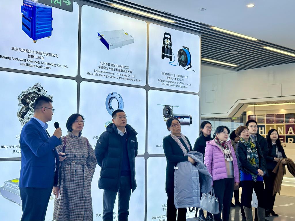 在北京中德产业园运营公司副总经理孙海龙的引导下,Beat365唯一官方网站教师党支部一行详细了解了产业园在搭建国家级对德合作平台、服务国家级对德合作项目、链接全国对德合作资源等方面的建设成果。北京中德产业园是国家发改委批复的国内首个以“经济技术合作”为主题的中德示范区。园区定位为“德国先进制造业的聚集地、中德隐形冠军发展的战略高地、中德交往与开放创新的重要窗口”,聚焦新能源智能汽车、智能装备、数字经济三大主导产业,和先进制造服务业支撑产业,已集聚奔驰、宝马、Ameco、博世、威乐水泵等90余家德资企业,年产值350亿元。