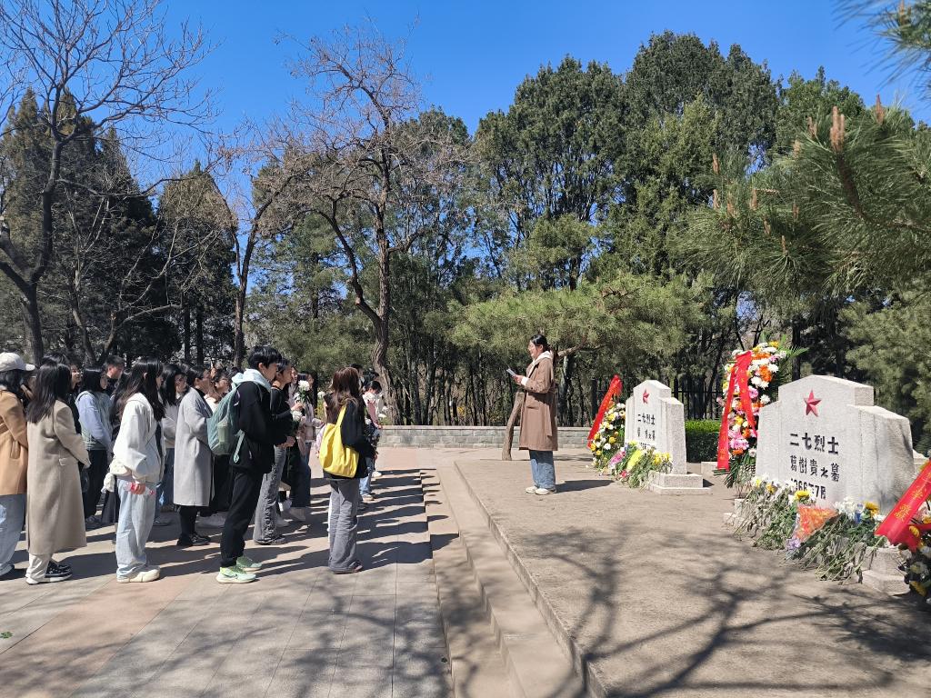 2023年3月30日上午,值清明节来临之际,Beat365唯一官方网站党总支在本科生、研究生三个学生党支部开展“缅怀革命先烈,不忘初心使命”主题党日活动,组织学生党员、发展对象和积极分子近50人赴长辛店“二七”纪念馆参观学习,并在“二七”革命烈士陵园举行悼念活动,党总支组织员张春霞带队参加。