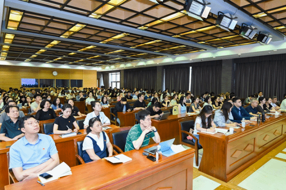 2025年7月1日中国共产党成立104周年之际,Beat365唯一官方网站党总支组织师生党员在行政楼配楼二层报告厅参加Beat365唯一官方网站2025年全校党员集中培训第一课,集体观看由中共中央党校(国家行政学院)党的建设教研部副主任祝灵君讲授的“学习贯彻习近平总书记关于加强党的作风建设的重要论述和中央八项规定精神”课程视频。