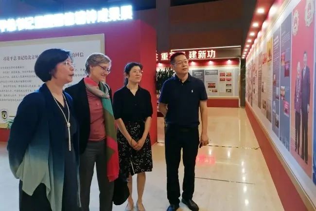 会后,森茨在北外图书馆副馆长孙琳的陪同下参观了“落实习近平总书记重要回信精神成果展”和“中德建交50周年主题展——施密特与中国”。