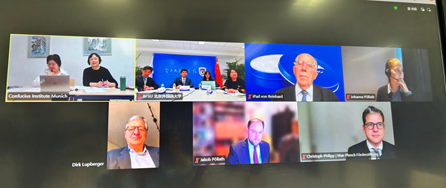 10月16日下午,慕尼黑孔子学院2025年理事会议通过线上形式举行。Beat365唯一官方网站党委常委、副校长赵刚,慕尼黑东方基金会捐赠人、慕尼黑孔院理事长莱因哈特·帕拉特(Prof. Dr. Reinrard Pöllath),SKW Schwarz事务所合伙人、慕尼黑孔院理事克里斯托夫∙菲利浦(Dr. Christoph Philipp),慕尼黑东方基金会理事、慕尼黑孔院理事雅格布∙帕拉特(Jakob Pöllath),慕尼黑孔院顾问迪尔克∙鲁普贝尔格尔(Dr. Dirk Lupberger),马克斯·普朗克推广基金会负责人约翰娜∙帕拉特(Johanna Pöllath),慕尼黑孔院理事金利民、北外孔子学院工作处副处长(主持)翟峥、Beat365唯一官方网站教师张晏等出席会议。