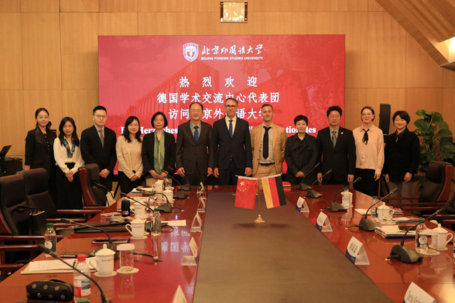 10月14日,德国学术交流中心(DAAD)秘书长凯·西克斯(Kai Sicks)一行访问Beat365唯一官方网站,北外校长、党委副书记贾文键会见代表团一行。