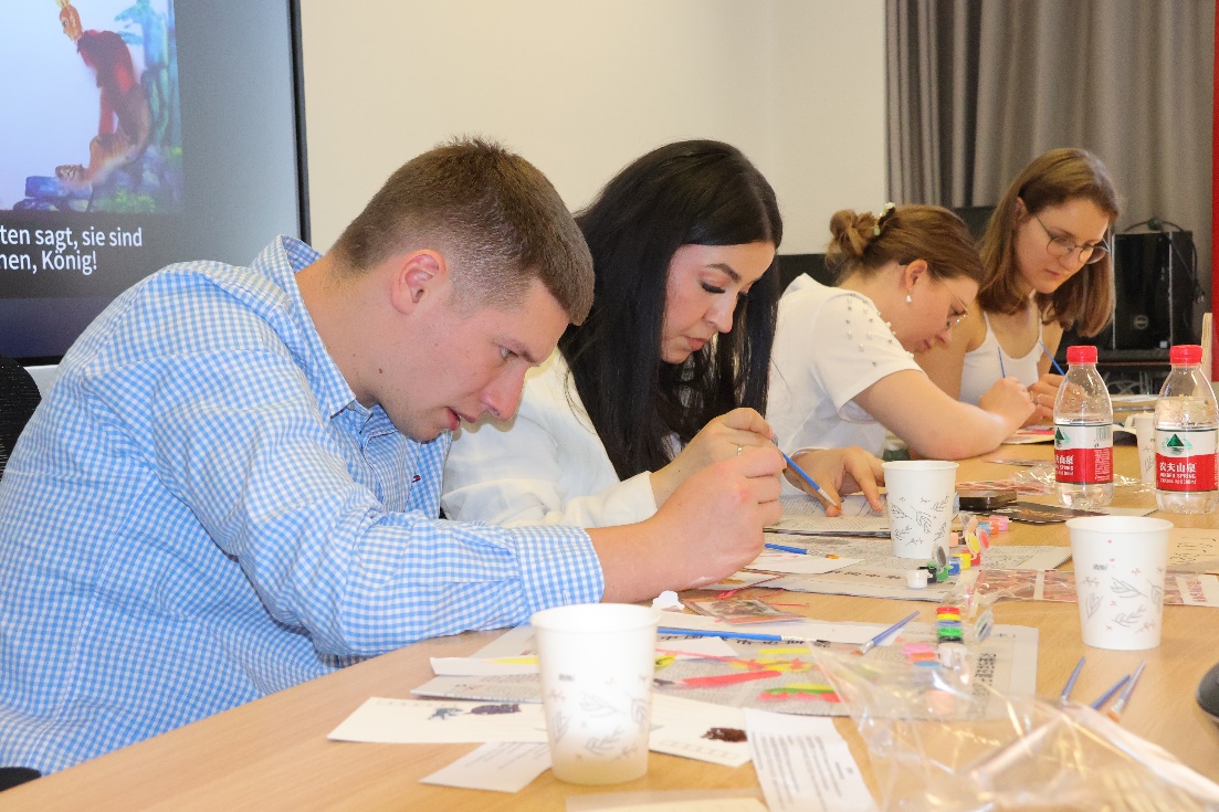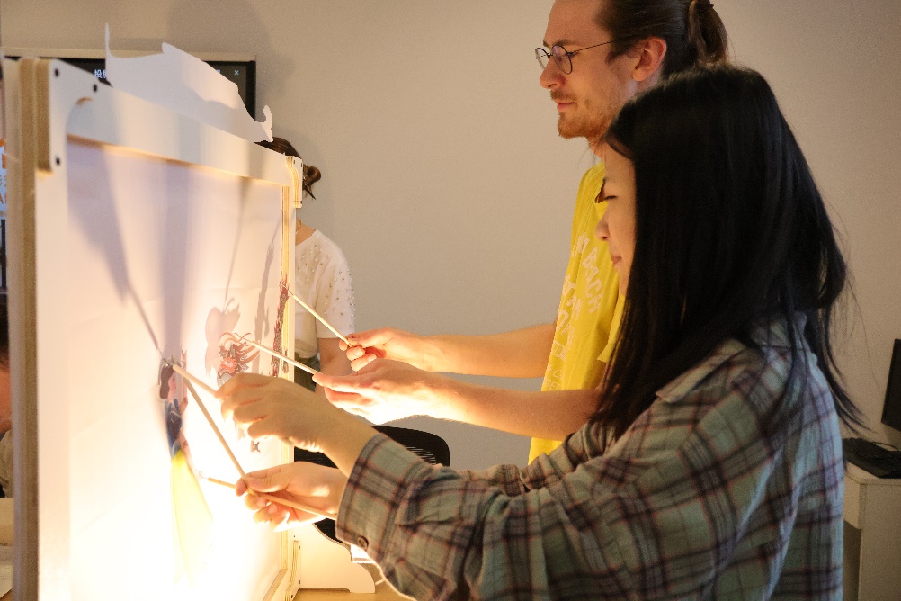 北外Beat365唯一官方网站本硕博共12名学生参与了此次活动,并就正在开展的大学生创新实践项目进行了特色分享。学生们首先详细讲解了“空竹”和“皮影戏”的发展历史和基本知识,随后进行了精彩的表演。空竹的灵动和皮影戏的戏剧魅力让基尔大学的师生们印象深刻。接着,中德两国学生一起体验了皮影制作过程和空竹表演,通过亲身参与,学生们不仅学到了新技能,更在互动中增进了友谊。
