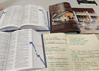 最难忘的是一次小组报告(Präsentation),我的队友是两名德国学生,从定题到最终展示,我们准备了一个多月。每周我们都在图书馆的研讨室见面,分享查到的文献,争论分析的框架,筛选支撑的理论。在交流的时候,我们会讲出自己的想法或者疑问,不断调整PPT的思路,遇到难以裁定的地方,还会经常找教授寻求建议。之前我们作报告往往强调一个话题的广度,即梳理清楚这件事的历史、发展、横向联系等等,而现在会更加注重话题的深度,即提出一个核心问题(Leitfrage),进行刨根问底式的深度挖掘,用严谨的理论工具层层剖析,直至得出你自己的结论。这不仅是语言的运用,更是思维方式的锤炼。