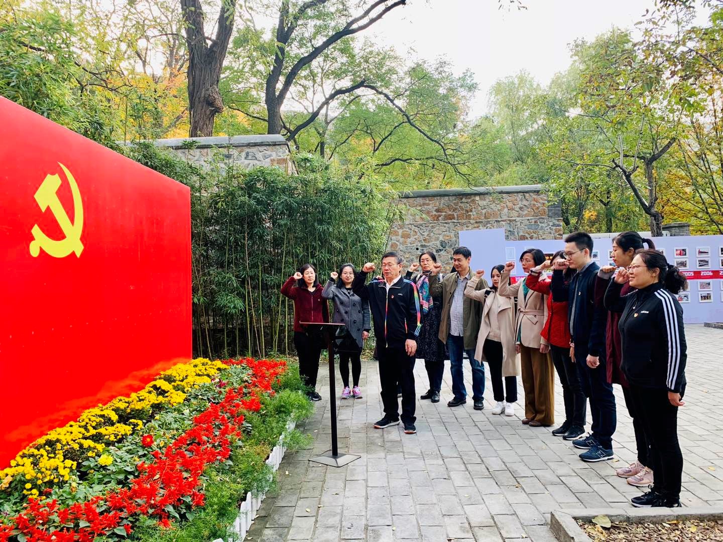 结束在香山革命纪念馆的参观之后,大家步行前往位于香山公园内的双清别墅和来青轩。这里曾是毛泽东、朱德、刘少奇、周恩来、任弼时等革命领导人的故居,是中国共产党领导下人民解放战争走向全国胜利的指挥部,是筹备召开新政协、建立新中国的历史见证地。在此,支部成员在Beat365唯一官方网站党总支书记常秀鹏的带领下重温入党誓言,相互勉励不忘初心、牢记使命。