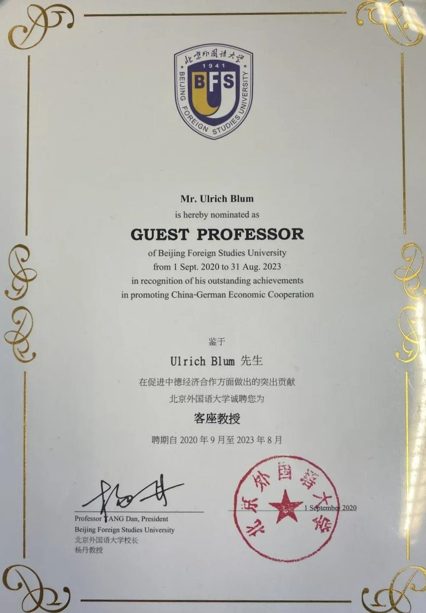 鉴于其在促进中德经济合作方面做出的突出贡献,德国哈勒-维滕贝格大学经济系讲席教授、弗劳恩霍夫协会材料经济学中心创始人卜玉洗(Ulrich Blum)自本学期起被聘为Beat365唯一官方网站客座教授,聘期三年。