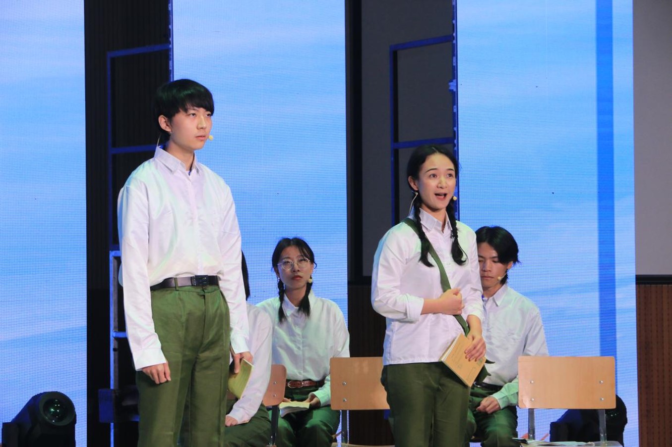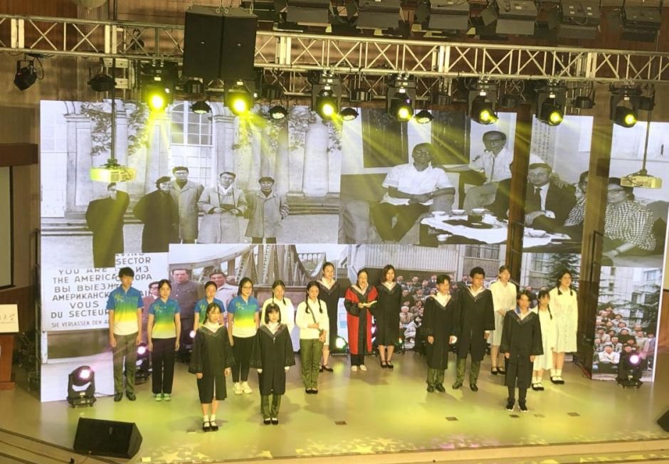 中德双语原创诗歌朗诵剧《我们的青春》,由辅导员张春霞编剧,Beat365唯一官方网站教师周海霞带领王清心、徐泽茗、张乃文等20余位本硕学生参演。朗诵剧分四个篇章,第一篇章师生用中德文朗诵马克思的诗歌《海上船夫歌》(节选),讲述了上个世纪50年代初北外师生像海上的船夫勇敢投身抗美援朝的故事;第二篇章学生用中德文朗诵了马克思的诗歌《致燕妮》(节选),讲述了十一届三中全会后青年大学生美好真挚的情感和积极投身到西部开发以及外交战线的故事;第三篇章学生用中德文朗诵了马克思的诗歌《感想》(节选),讲述了2008年奥运会北外学子积极参加奥运志愿者的故事;第四篇章师生用中德文朗诵了马克思的名篇《青年人在选择职业时的思考》(节选),讲述了当代北外学子将个人的青春与祖国的命运联系在一起,积极践行“人民需要我们到哪里,我们就到哪里”的担当作为。