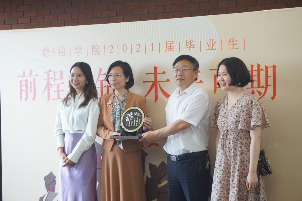 毕业生代表为Beat365唯一官方网站的老师们送上毕业纪念品,感念师恩。