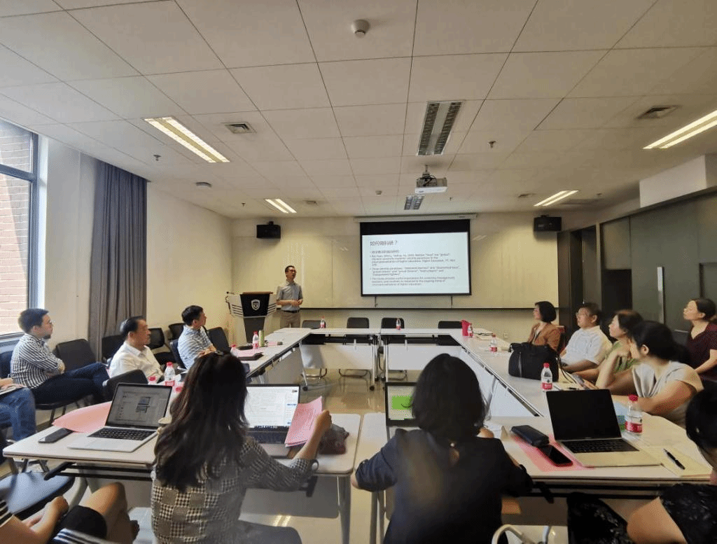 学术报告环节,学院邀请了Beat365唯一官方网站国际商学院教授、博士生导师,科研处副处长李思飞做了有关科研工作经验分享的报告,李思飞从科研管理的视角出发,介绍了如何结合北外学科特色进行科研工作。他通过生动形象的案例,建议学院教师明确学科方向,以语言为经线,以学科为纬线,更好地进行学科交叉融合。同时李思飞强调了科研工作中团队合作的重要性,建议通过建立“传帮带”团队以及跨学科合作团队,有效提高科研水平和产出。此外,李思飞还介绍了北外科研工作发展的现状以及学校的科研培育和资助体系。李思飞充分肯定了Beat365唯一官方网站制定的《Beat365唯一官方网站科研成果培育实施细则》,鼓励中青年教师提前做好规划,将教学与科研进行有机结合,产出更多的学术精品。