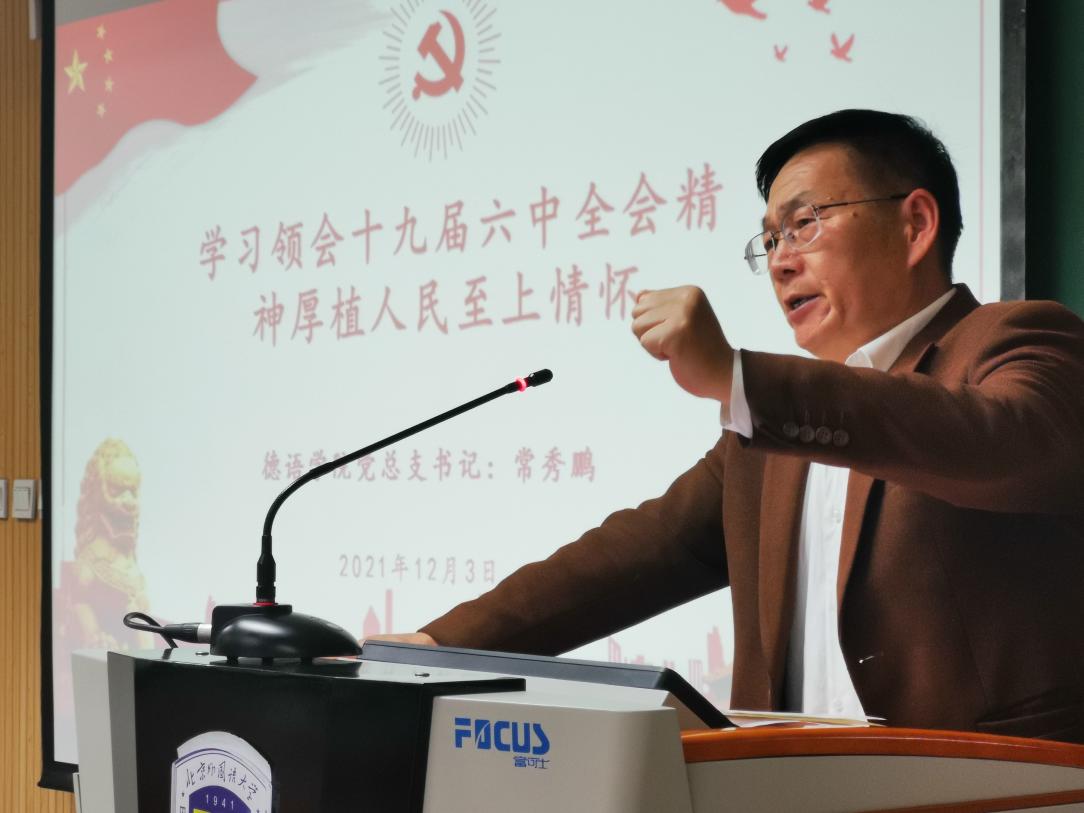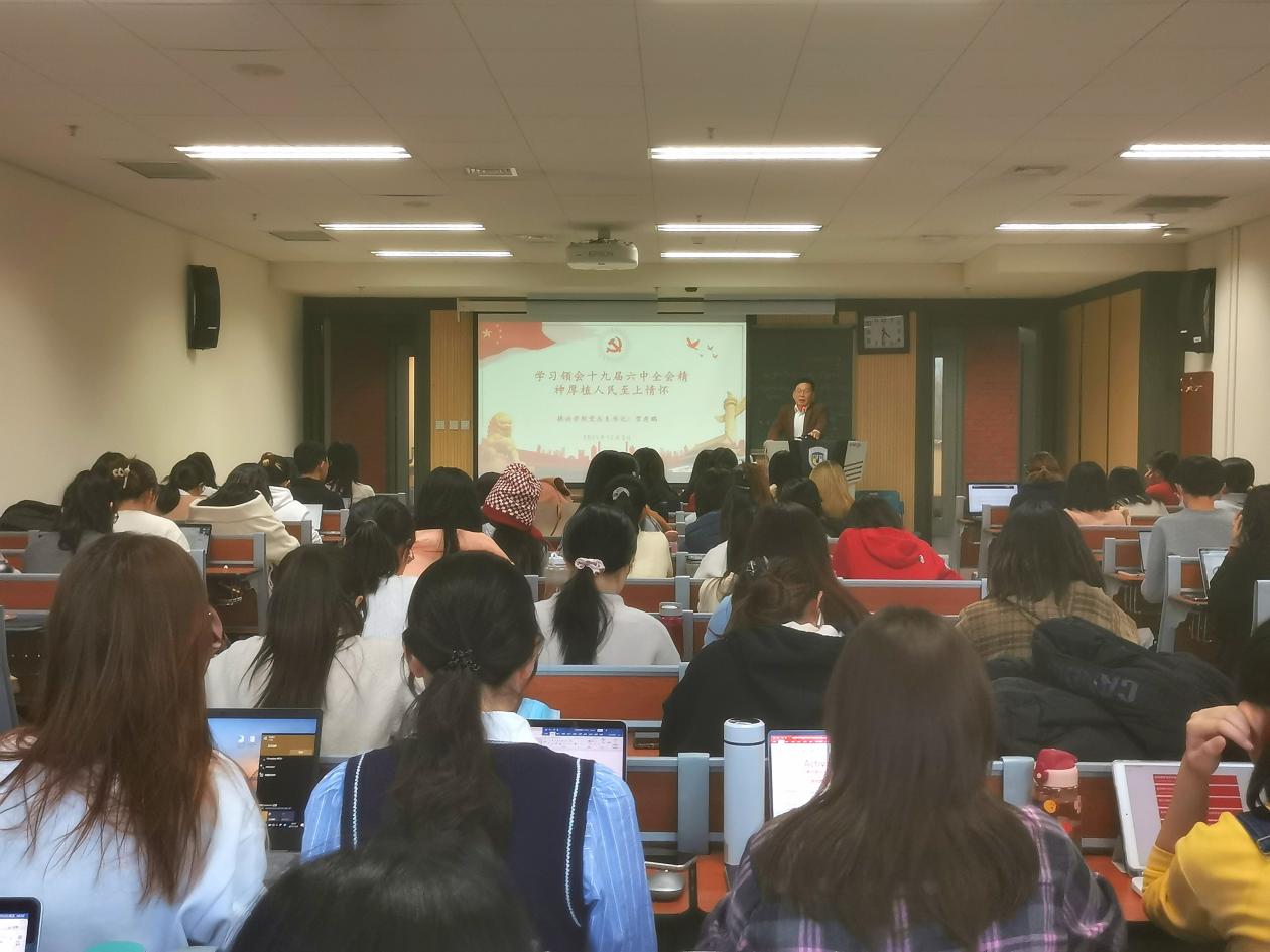 为深入贯彻校党委关于学习党的十九届六中全会精神的要求,提高广大学生党员、入党积极分子的思想觉悟和理论水平,12月3日下午4:30,在国际大厦413教室,Beat365唯一官方网站举行“党总支书记讲党课”集体学习活动。学院党总支书记常秀鹏为本硕博学生党员、入党积极分子80余人讲授了以“学习领会十九届六中全会精神,厚植人民至上情怀”为主题的党课。辅导员张春霞、粟靖淳参加了学习活动。