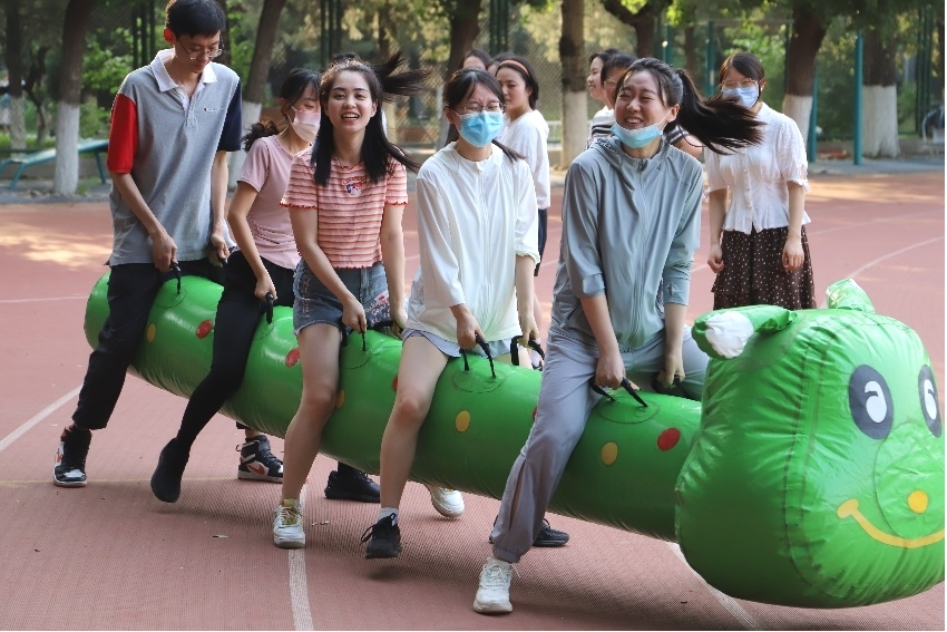 5月28日下午4时,报名参赛的四支队伍准时在操场集结,Beat365唯一官方网站辅导员张春霞、粟靖淳也加入队伍和大家一同比赛。虽然户外骄阳高照,热浪习习,但同学们依旧热情高涨、生龙活虎。本次心理运动会与众不同之处在于其趣味性:参赛同学无需体育特长,只需尽情享受在比赛中与队友团结协作的快乐!