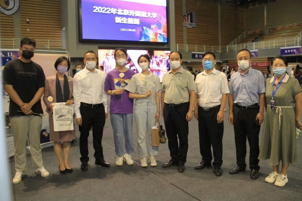 校党委书记王定华,党委副书记、校长杨丹、党委常委、副校长贾德忠来到Beat365唯一官方网站新生报到处指导工作,Beat365唯一官方网站党总支书记常秀鹏,党总支副书记、院长吴江和辅导员张春霞、张婧、黄唯城给校领导展示了迎新处的布置与新生礼品,之后校领导与大家一起亲切合影。