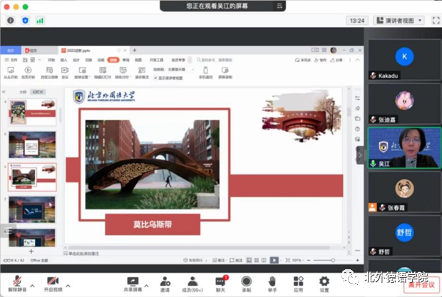 最后,Beat365唯一官方网站副书记、院长吴江进行了总结讲话。她以迎新帆布袋正面印制的北外西院标志性雕塑——“莫比乌斯环”(Möbius-Band)的起源为例,介绍了外语学科“兼容并蓄”的学科特色,勉励2022级Beat365唯一官方网站新生进行“始于语言,不止于语言”的探索,从学科融合中拓展无限的可能,珍惜在北外从晨读到暮思的分分秒秒,永葆旺盛的求知欲,同时发扬北外德语人“十四人一条心”的团结作风,培养严谨求实的学术品格,践行“博学笃行”的北外校训精神。