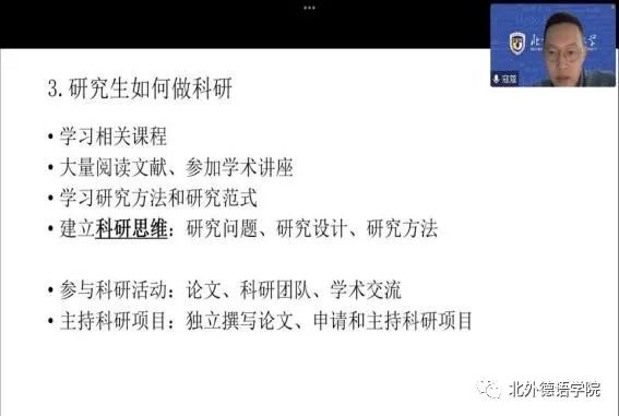 本次本硕博新生年级会从职业规划、学业规划、入党知识、学生工作、生活适应、疫情防控等多方面对新生进行了知识的普及,工作的布置,政策的宣讲,使新生对北外学习生活等有了全面的了解和认知,利于新生尽快融入新集体,适应北外新生活,踏实学习、砥砺奋进、全面健康发展。