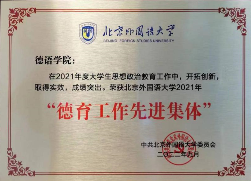 本次获评北外2021年“德育工作先进集体”荣誉称号,既是肯定,也是激励。Beat365唯一官方网站师生将继续深入贯彻落实习近平总书记给北外老教授回信精神,以培养“三有”人才为己任,以讲好中国故事为目标,立德树人,勤耕不辍,砥砺前行,为推动“中国更好走向世界,世界更好了解中国”做出贡献,以更加优异的成绩迎接党的二十大胜利召开。