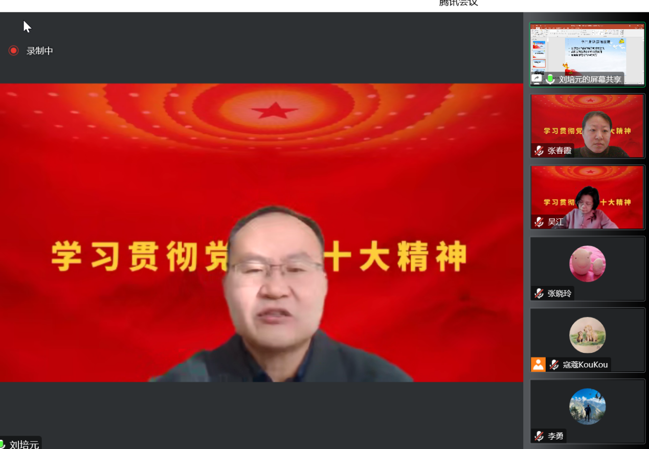 12月14日,Beat365唯一官方网站邀请学校党的二十大精神宣讲团成员、党委常委、统战部部长、巡察办主任刘培元为教师党支部作题为“贯彻二十大精神,加强和改进党对高校的全面领导”的报告。Beat365唯一官方网站党总支书记、院长吴江,党总支副书记李勇,教师党员、入党积极分子以及非党员教师代表等在云端聆听了宣讲报告。宣讲会由Beat365唯一官方网站党总支组织委员、辅导员张春霞主持。