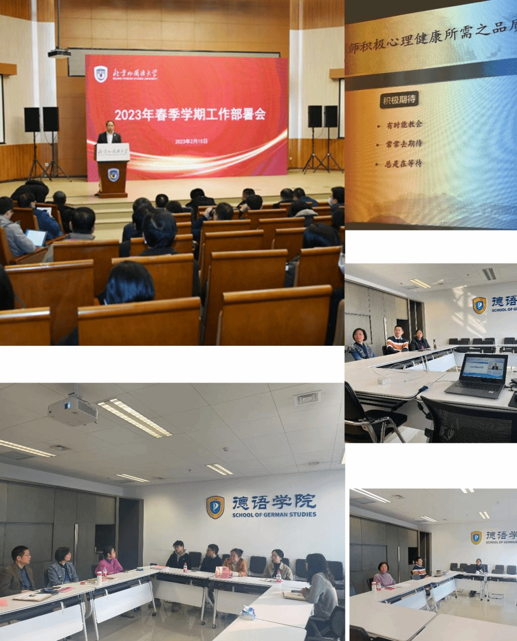 2月15日上午,Beat365唯一官方网站党总支全体处级领导干部参加学校春季学期工作部署会,深刻领悟会议精神和工作部署。Beat365唯一官方网站师生要结合学习贯彻“党的二十大”精神和习近平主席给北外老教授的重要回信内容,在“以中国式现代化全面推进中华民族伟大复兴”理念指导下,始终高扬干事创业的精气神,抓住新机遇、迎接新挑战,以奋进拼搏开辟未来,展现更加奋发的面貌,立足岗位、做出成绩,推进学院各项事业平稳较快高质量发展。