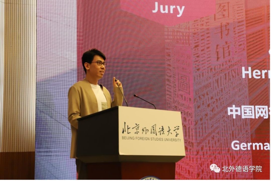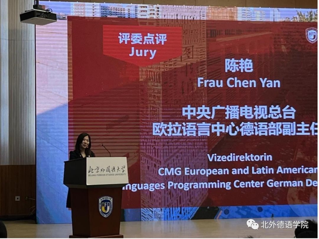 本届大赛决赛邀请了贾建新参赞、北外山东校友会会长、青岛鸿裕吉交通装备有限公司总经理秦思刚、中央广播电视总台欧拉语言中心德语部副主任陈艳以及中国网德语频道主编任斌担任评委。赛事环节由Beat365唯一官方网站2019级本科生曹涵和2022级本科生黄婉茹用中德双语主持。