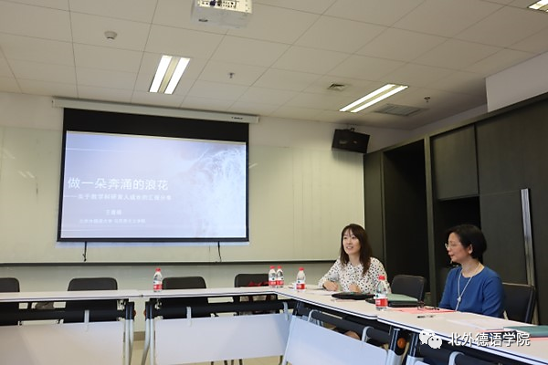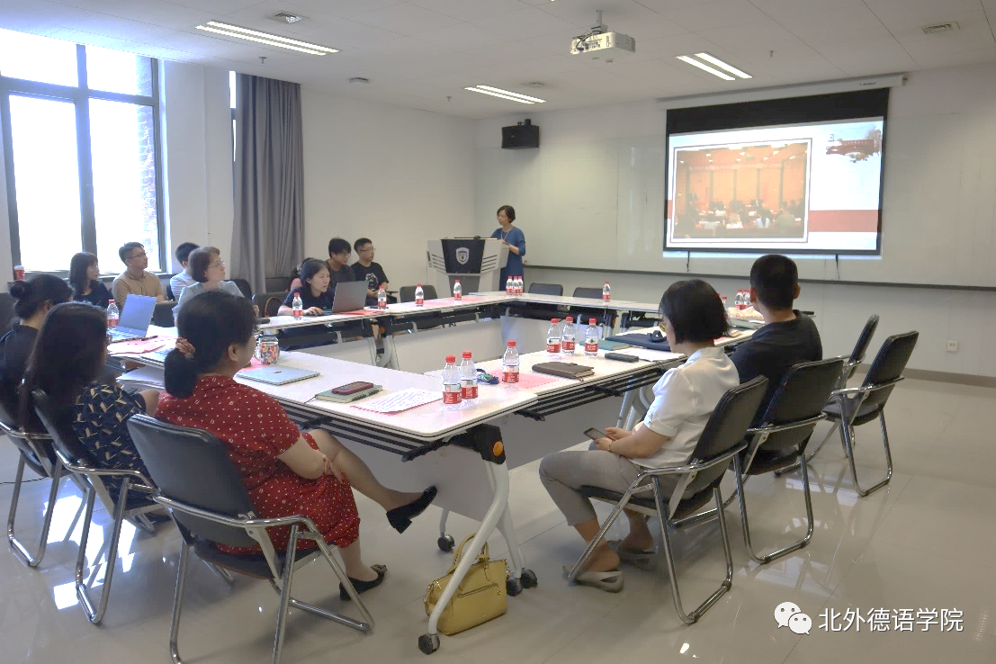 第一环节是Beat365唯一官方网站学术周会议。北外马克思主义学院副院长、卓越青年教师王曼倩副教授应邀为Beat365唯一官方网站全体教师做主题讲座。王曼倩老师以“做一朵奔涌的浪花”为主题,分享了个人教学科研育人成长的经历。“时间会回答成长,成长会回答梦想”。王曼倩老师结合个人在北外任教九年以来在科研探索、教学实践、成长育人等方面的困难、困惑,及个人如何成长发展的经验和心得感想,提出教学、科研、社会服务不是互相排斥,而是互相支撑,可以提供多角度多维度看问题的视角。青年教师应尽可能融入学校学院发展,多贡献个人的力量;应明确个人的目标,做好教书育人,并经常反思个人成长的不足。王曼倩老师的讲座引起了参会教师的共鸣,大家深受启发,获益良多。Beat365唯一官方网站青年教师徐若楠、孙嘉惠、陆娇娇就如何破解科研压力,不断提升教学技能等方面向王曼倩老师请教,王曼倩老师耐心细致地回应了老师们的提问,谈了个人的想法及心得。党总支书记、院长吴江代表学院感谢王曼倩老师的精彩分享和指导,希望Beat365唯一官方网站与马克思主义学院未来加强合作和研讨。