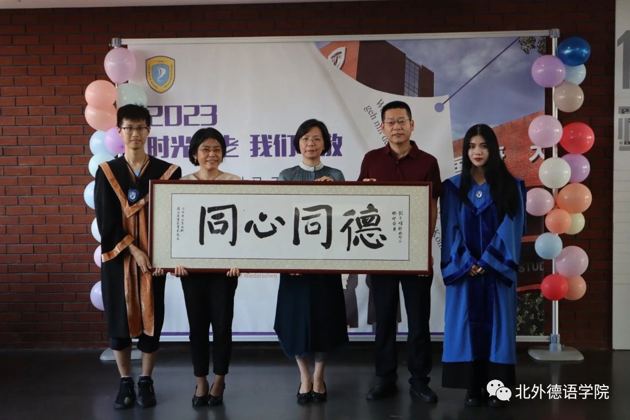 最后党总支书记、院长吴江做春季学期工作的总结汇报。对照学期初工作重点汇报了Beat365唯一官方网站本学期在学习贯彻二十大精神、师德师风建设、课程思政、本科教学、教材编写、科研、招生、就业等方面的工作进展,同时汇报了以“洛克与中国”主题展、奥地利文化巡礼、第五届全国高校本科生德语配音大赛、“音乐之声”初夏晚会以及北外德语国家讲堂系列学术报告等为主体活动的Beat365唯一官方网站“春之声”文化节——“邂逅奥地利”的举办情况,对积极参与和筹办各项活动的师生表示诚挚的谢意。临近期末,师生团结一心,成功接待德国社民党联合主席克林贝尔一行,为中德人文交流尽了绵薄之力。总结会的最后,吴江代表学院感谢校友给与学院各项工作的鼎力支持,对本学期在教学、科研、管理各领域获得奖励的师生表示由衷的祝贺,并给各位老师展示了2023届毕业生向学院赠送的“同心同德”的书法作品,希望师生“同心同德”,守正创新,踔厉奋发,共同推动学院各项工作高质量发展。