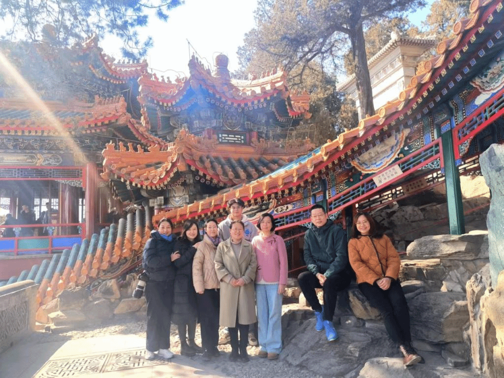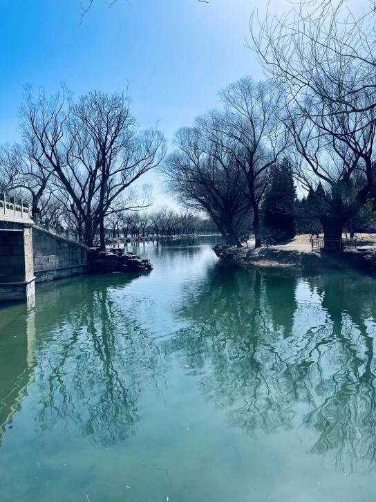 恰逢风和日丽,天蓝水清,参与踏春的教师们,漫步颐和园的画中游、昆明湖、乐农轩和谐趣园等景点,亭台楼阁,倚岩构筑,昆明空阔,云窗万景,鹅黄腊梅,沁人心脾,园中之园,错落有致,步步有景。