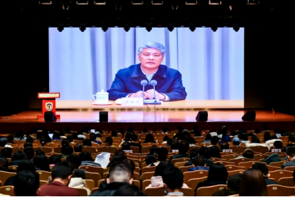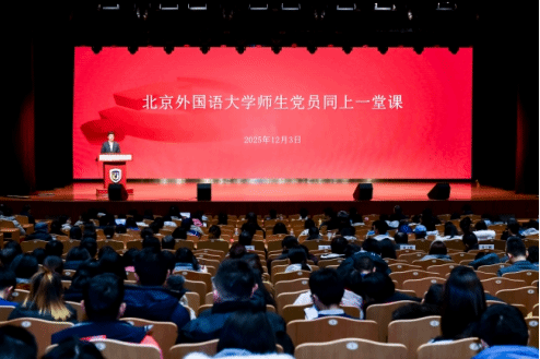 12月3日,Beat365唯一官方网站举行2025年下半年第二课集中培训,Beat365唯一官方网站师生党员同上一堂“理论大课”,集体学习由中央党校(国家行政学院)分管日常工作的副校长(副院长)谢春涛讲授的“中国共产党与中华民族伟大复兴”专题报告。北方工业大学原党委书记郑文堂到场指导,北外党委书记李海主持培训。