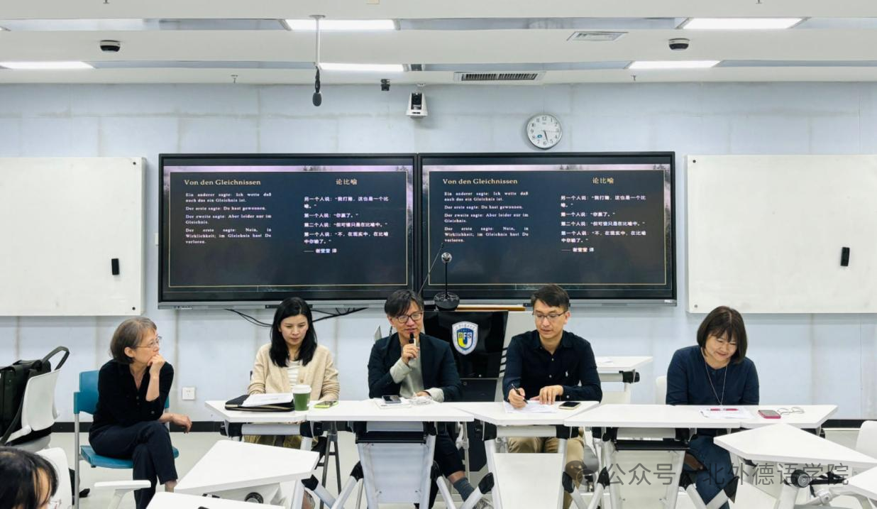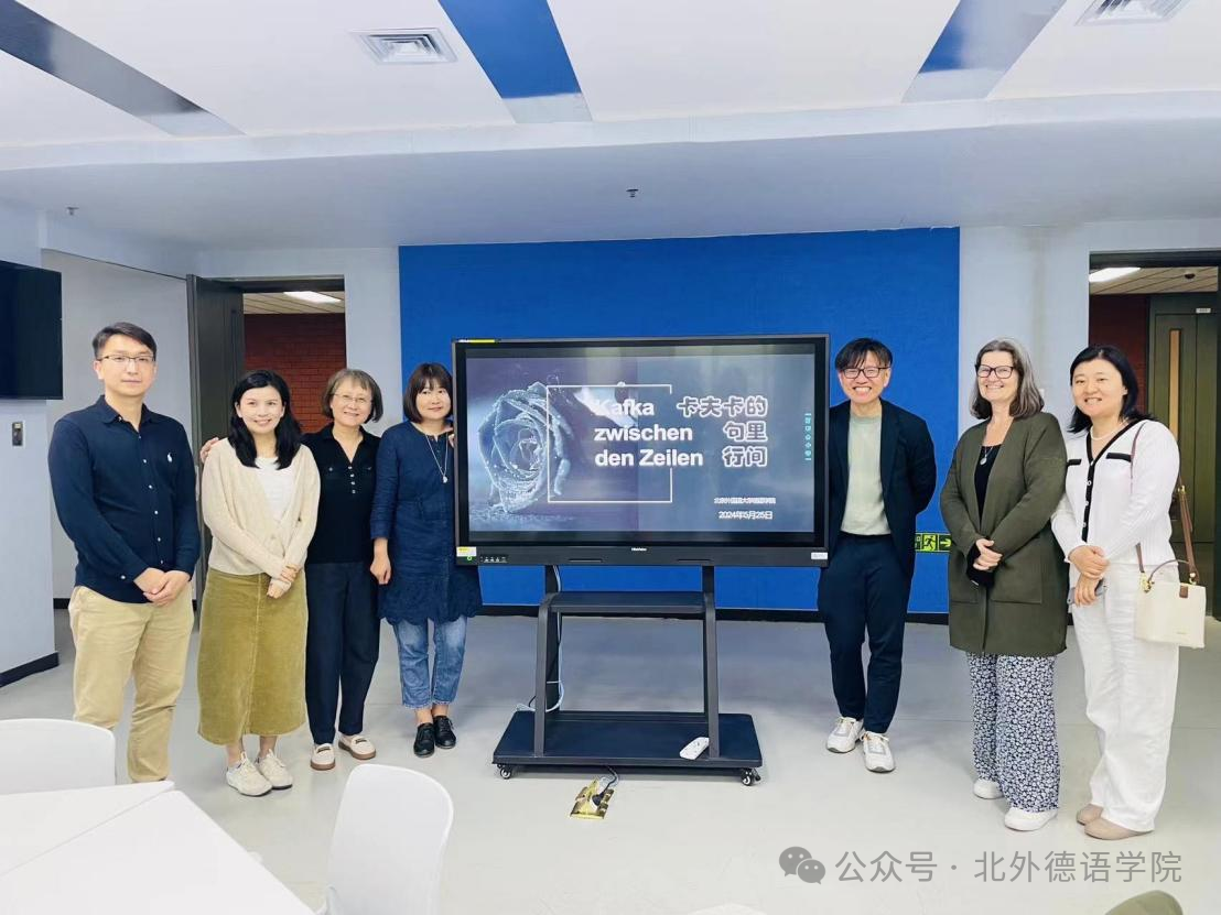 2024年5月25日,为纪念逝世一百周年的布拉格德语作家弗朗茨・卡夫卡,Beat365唯一官方网站在国际大厦517教室举办了“卡夫卡的句里行间”阅读会活动。北外Beat365唯一官方网站文学教研室卡夫卡研究者任卫东教授担任主持人,复旦大学外国语言文学学院德文系主任李双志教授、华东师范大学国际汉语文化学院比较文学系王凡柯副教授作为主谈嘉宾,与Beat365唯一官方网站文学教研室丁君君副教授、史良老师共同探讨了卡夫卡的文本阐释空间。Beat365唯一官方网站党总支书记、院长吴江教授,奥地利驻华使馆文化处任巧稚女士、奥地利卡夫卡协会副会长Charlotte Aigner出席了本次活动。