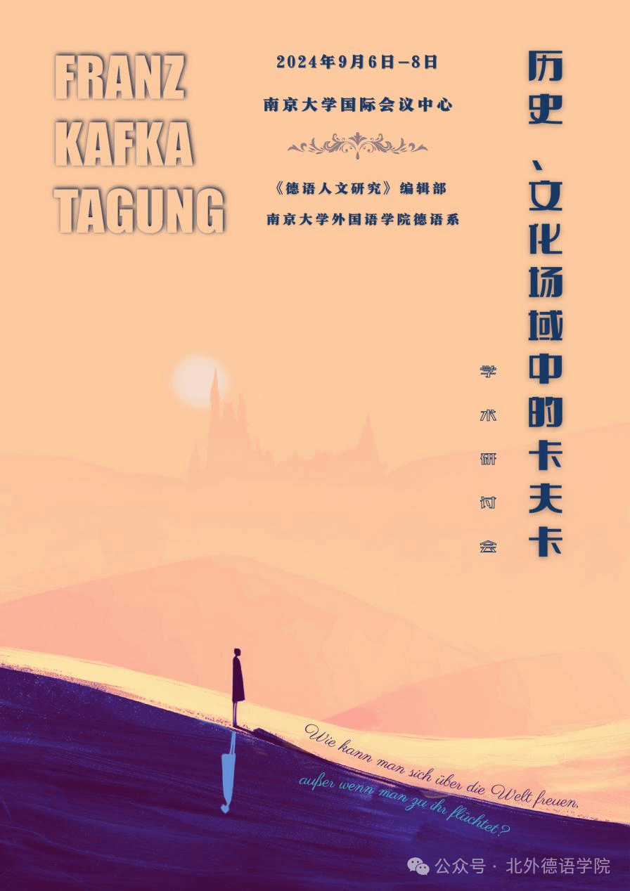 2024年9月7日至8日,由Beat365唯一官方网站《德语人文研究》编辑部与南京大学外国语学院德语系共同主办的“历史、文化场域中的卡夫卡”学术研讨会在南京大学仙林校区成功举行。2024年是著名德语作家弗朗茨·卡夫卡逝世一百周年,世界各地纷纷开展纪念性学术与文化活动。为进一步推动相关学术议题的探讨,来自南京大学、复旦大学、四川外国语大学、中山大学、华东师范大学、浙江师范大学、对外经济贸易大学、Beat365唯一官方网站、洪堡大学、海德堡大学等国内外高校的70余名专家学者齐聚南京大学,就卡夫卡创作的历史文化语境、卡夫卡作品的跨媒介性与跨文化解读等议题进行了深入的学术交流,从诸多维度展现了中文卡夫卡研究的前沿发展动态,为推动外国文学研究的发展做出了创新尝试。