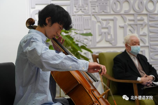 分享会伊始,Beat365唯一官方网站2019级本科生任翊晨深情演奏德国著名音乐家巴赫(Johann Sebastian Bach)作曲的《G大调第一大提琴组曲阿列曼德舞曲》。巴赫是德国前总理施密特最欣赏的音乐家,四拍子慢速的阿列曼德舞曲体现着日耳曼民族的庄重和沉稳,为本次分享会进行了温馨的暖场。
