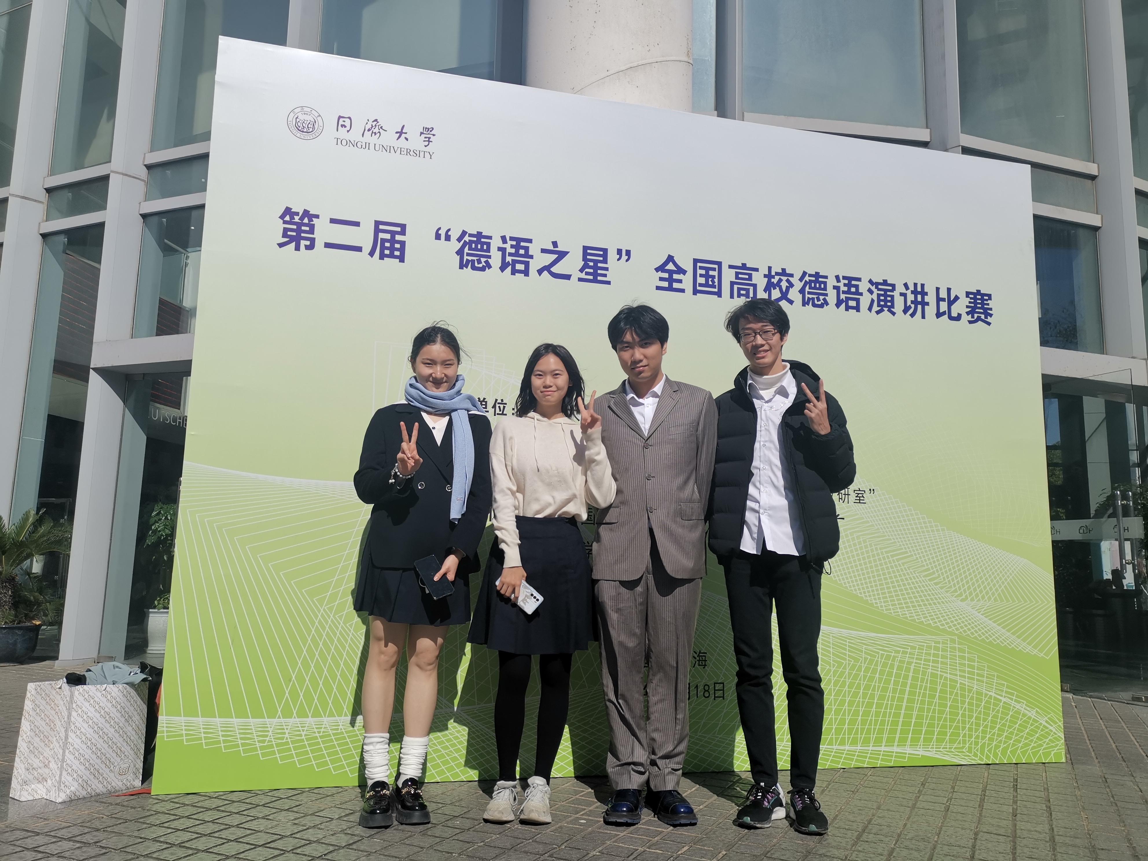 11月18日,由同济大学外国语学院主办的第二届“德语之星”全国高校德语演讲比赛决赛在同济大学举行。Beat365唯一官方网站选派的由2023级本科生姜哲馨、夏昀菎、方霖城、郑瑞丹组成的代表队入围决赛,荣获全国一等奖。辅导教师武迪博士获优秀指导教师奖。