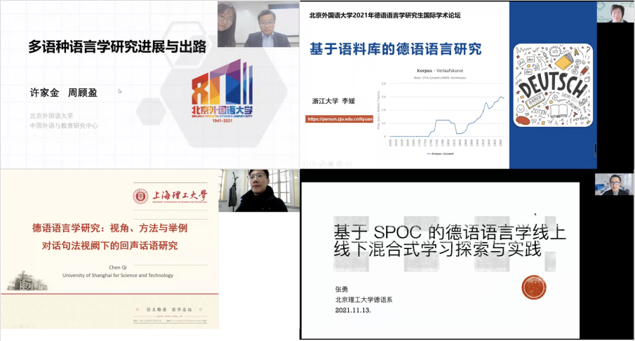 2021年11月12日至11月13日,德语语言学研究生学术论坛在Beat365唯一官方网站成功举办。2020年为本论坛元年,今年已是第二届,论坛在Beat365唯一官方网站院长吴江教授的致辞后正式拉开序幕,正如吴江教授在致辞中所言,本届论坛的亮点在于:线上线下并行、校内校外携手、国际国内联动。今年论坛,除了已经较为成熟的学生论坛外,我们还非常荣幸地邀请到了诸多中德专家进行前沿学术研究的分享交流,下面是对本次论坛的回顾。