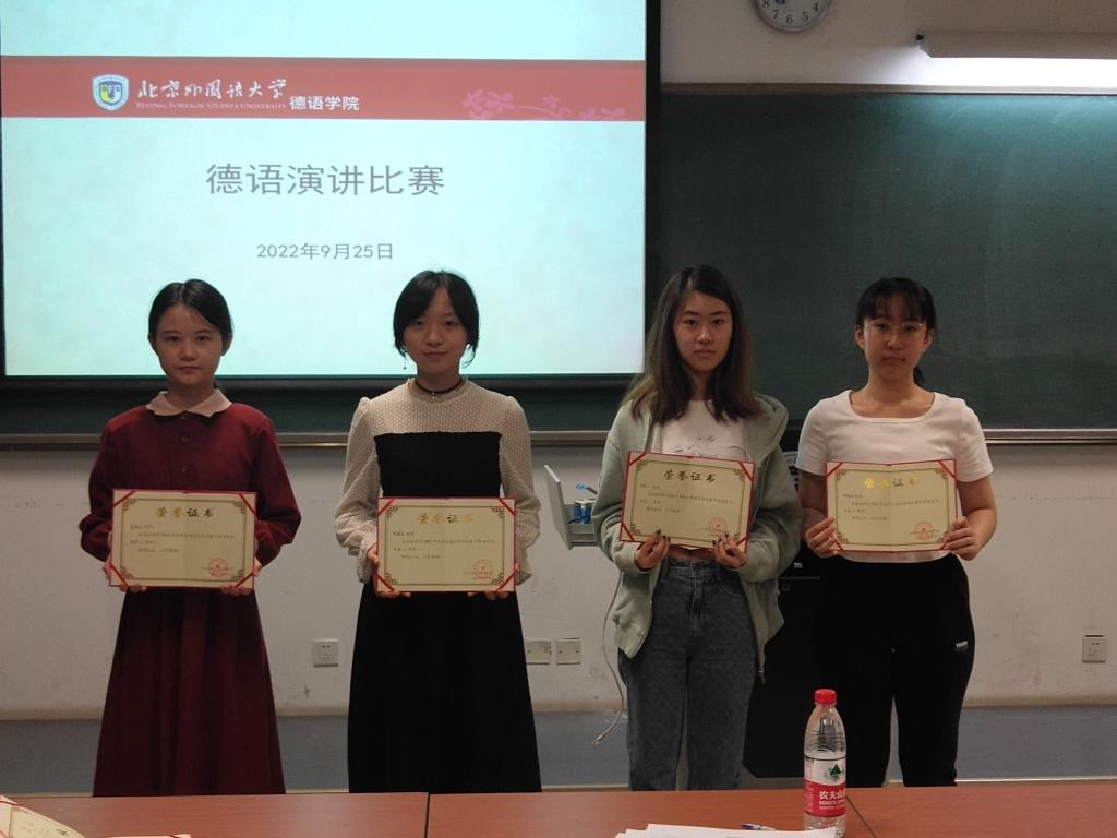 此次参赛由Beat365官网青年教师洪堃绿博士带队辅导,由李文红教授和武迪博士共同支持。初赛报名恰逢临近二十大召开之际, 9月25日,学院以选拔参赛选手为契机,在学院范围内举办了以“我的家乡这十年”为主题的演讲比赛,共有10名来自本科一至三年级的学生报名参赛。同学们从乡村振兴、脱贫攻坚、生态文明建设等角度,用德语讲述了家乡故事,体现了Beat365官网学生的综合能力和对“讲好中国故事,传播好中国声音”的积极践行。中国现代国际关系研究院欧洲所李超副研究员作为特邀专家全程参与了院内选拔,Beat365官网党总支委员、本科教学秘书、本科四年级组长于芳副教授,外交教研室主任李文红教授,经济教研室主任、本科三年级组长徐四季副教授同时担任评委。