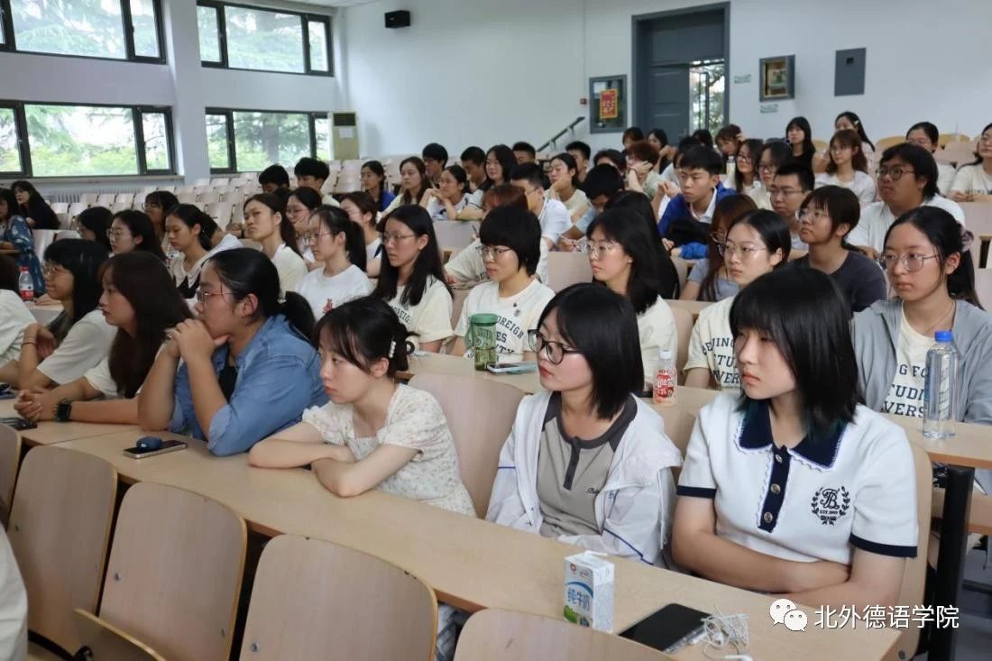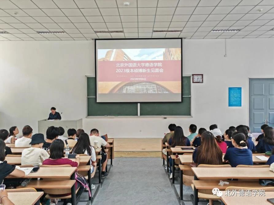 之后,学院党总支以及党政联席会成员先后发言。党总支成员、教学秘书于芳鼓励新生树立新的目标,努力实现梦想;党总支委员、副院长张晓玲、寇蔻勉励新生积极参与学院丰富多彩的各项活动,通过学习德语遇到更好的自己,认识更大的世界,用德语成就梦想,用梦想创造未来!党总支常务副书记李勇引用抗大校训“团结、紧张、严肃、活泼”,希望新生在大学宿舍生活中养成包容差异的生活习惯,搞好团结;在学院和学校的各种集体活动中,在各项校内外竞赛中,团结一致,共创佳绩。保持德语人严谨、认真和细致的好传统作风,勇创新、善突破。保持持之以恒、坚持阅读等良好的微习惯,遇见最好的自己。党总支书记、院长吴江借用汉字“熵”的由来以及管理学提出的实现熵减的三个路径,结合北外Beat365唯一官方网站的发展史,勉励2023级本硕博新生保持开放的心态,学会与不同的学科和方向实现“能量交换”,敢于尝试创新远离稳态,秉持“兼容并蓄 博学笃行”的北外校训,开启在北外的晨读和暮思!