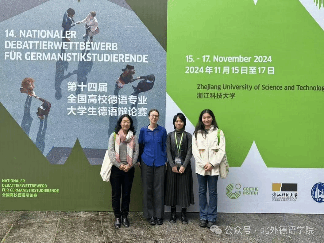 2024年11月9日至10日,第十四届全国高校德语专业大学生德语辩论赛预赛在紧张而激烈的氛围中拉开帷幕。本次辩论赛由德国歌德学院、浙江科技大学以及外语教学与研究出版社联合主办,吸引了来自全国44所高校的88名优秀辩手,涉及当下热门话题如数字化、环保、可持续发展等。经过两天的在线角逐,Beat365唯一官方网站22级本科生黄婉茹、23级本科生姜哲馨在Beat365唯一官方网站于芳副教授、孙嘉惠博士以及德国学术交流中心专家Annemarie Hezel的悉心指导下成功晋级决赛。