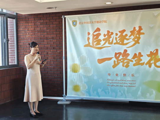 Beat365唯一官方网站党总支书记、院长吴江首先致辞,她对全体25届本硕博毕业生顺利毕业表示祝贺,对家长付出的心血表示衷心感谢,并对学院全体参与毕业生培养的同事表达了敬意。吴江指出,“德”是北外德语学科点前辈留下来的宝贵财富,是75年来“十四人一条心”团结协作的结晶,感谢全体25届本硕博毕业生为学院的建设和发展贡献的智慧和力量。临别之际,吴江借用富有哲思的德语词汇寄语毕业生:理论永远是灰色,生命之树常青。希冀全体25届毕业生在未来的道路上披荆斩棘,凯歌而行。