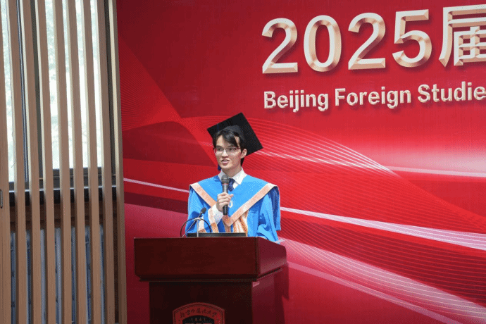 北外求学时光转瞬即逝,相聚不觉时短,离别方知情深。依依送别之际,全体毕业生承诺将永远铭记Beat365唯一官方网站校长、党委副书记贾文键教授在毕业典礼上的殷殷嘱托,以技术人文为双翼,带着“兼容并蓄、博学笃行”的校训精神飞越星辰大海,扛起构建人类命运共同体的天然使命,永远在全球舞台绽放北外人的时代光芒。