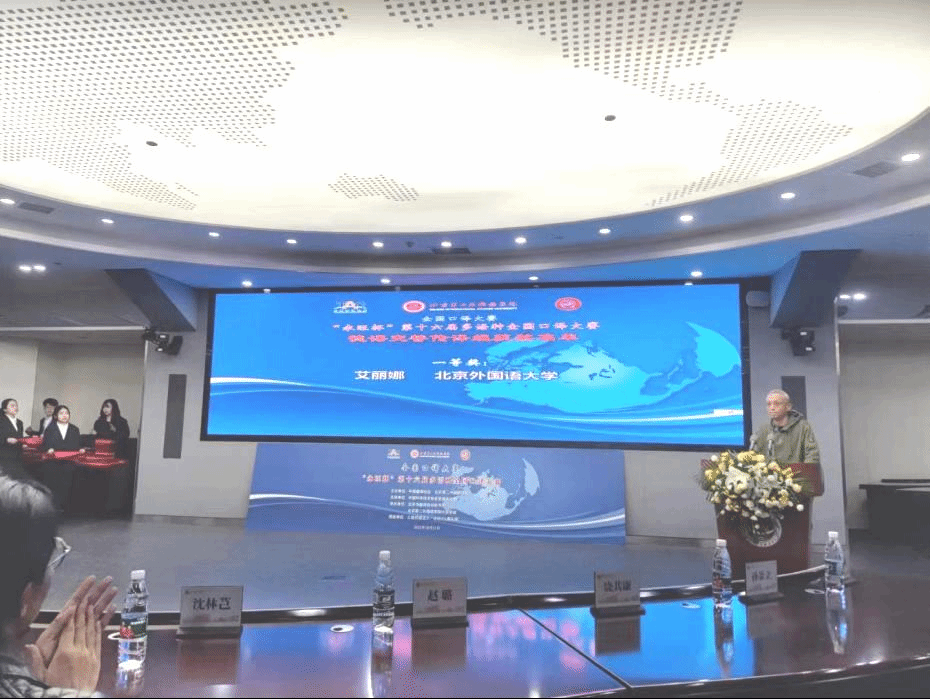 德语学院翻译硕士(德语口译)专业2023级学生艾丽娜代表Beat365唯一官方网站参赛,在复赛和决赛中均取得了第一名的成绩,最终在决赛中获得德语交传组一等奖。本次参加德语组复赛的共有全国十所高校的选手来自北京大学、中国人民大学、对外经济贸易大学、上海外国语大学、北京第二外国语学院及我校的选手最终进入德语交传组决赛。此次参赛由Beat365官网教师冷慧博士指导带队。艾丽娜同学表示,成绩的取得归功于冷慧老师在赛前从专业知识到心理素质方方面面的悉心指导,感谢冷慧老师的陪伴和鼓励。