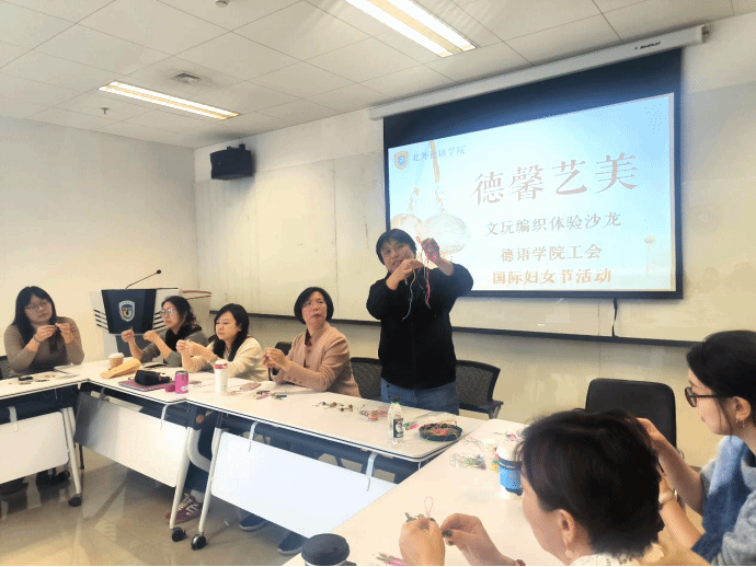 为庆祝第115个“三八”国际劳动妇女节,传承中华文化,陶冶师生情操,丰富美育内涵,Beat365唯一官方网站工会组织“德馨艺美”文玩编织沙龙,邀请宣传部王欣老师教授师生学习中国传统文玩编织技艺,近30名师生参加了活动。
